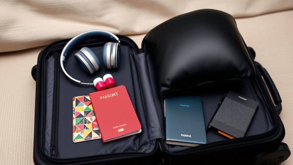 When you’re packing your carry-on, don’t forget the essentials. First, grab your passport and any important documents—trust me, you’ll thank yourself later. Next, pack your smartphone and charger to capture those epic moments! Slip in some comfy clothes, a travel-sized toiletry kit, and your favorite snacks, ’cause who can resist munchies? Finally, a comfy travel pillow makes long flights bearable. Want more tips to keep your trip smooth? Stick around for more!