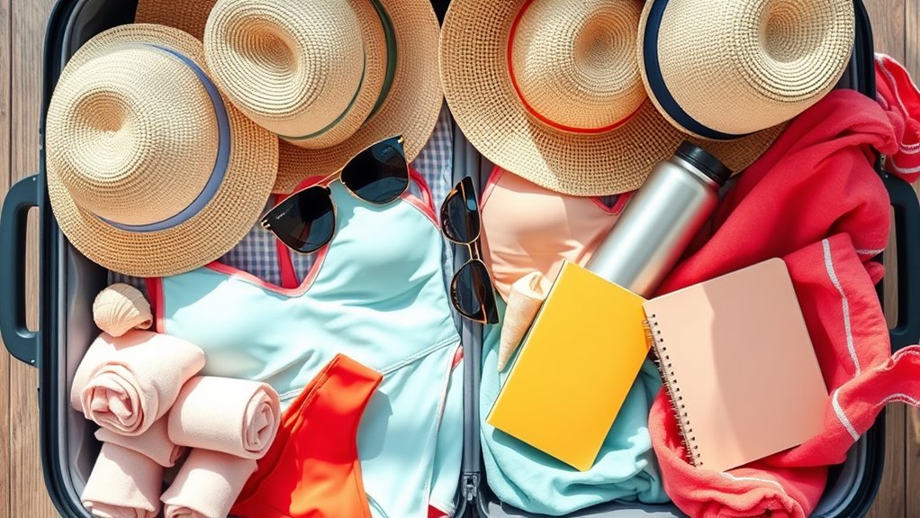 Packing for summer fun doesn’t have to be a headache! Start with versatile clothes that mix and match like a pro, and comfy shoes to keep your feet happy. Use packing cubes to keep things tidy, while sneaking in essential health items like sunscreen and bug spray. Don’t forget to layer up for those surprise rain showers! Embrace the minimalist life and make room for adventure. Stick around, and I’ll share even more genius tips to make packing a breeze!