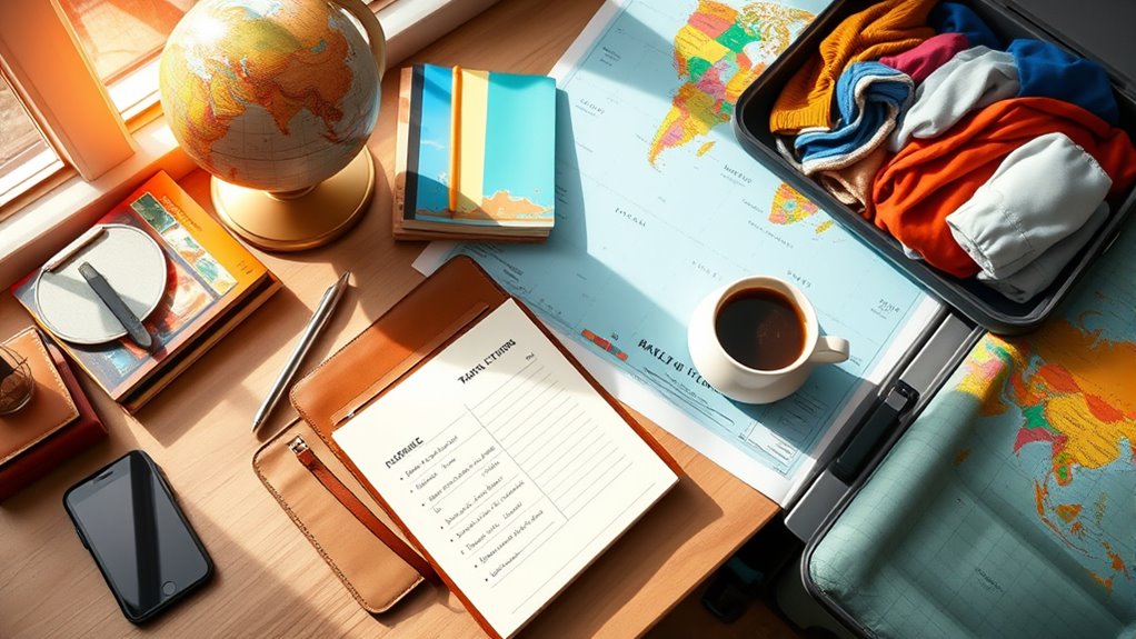Getting ready for a trip doesn’t have to be a drama! First, check that passport and visa are good to go. Gather important documents like your insurance and booking confirmations. Next, register for travel alerts to stay in the loop. Don’t forget travel health insurance—better safe than sorry! Pack smart with versatile clothes and essentials. Secure your home before jetting off, and plan how you’ll stay connected. Stick around to uncover the last-minute checks that’ll make your departure smooth!